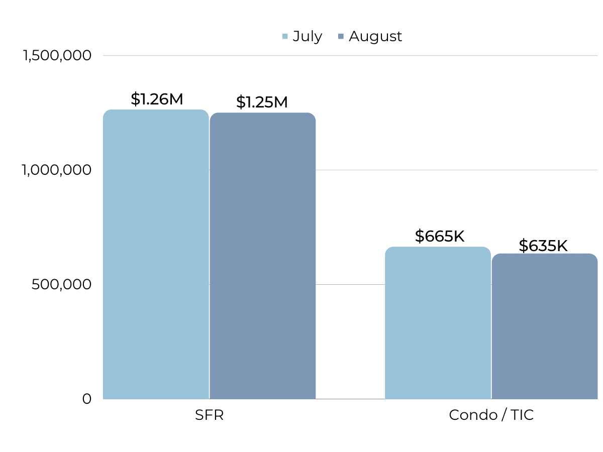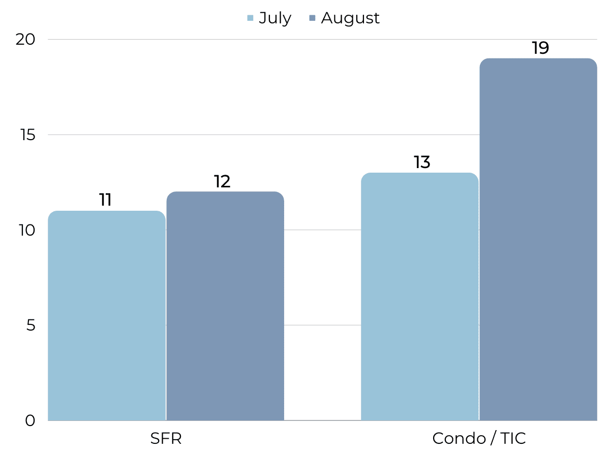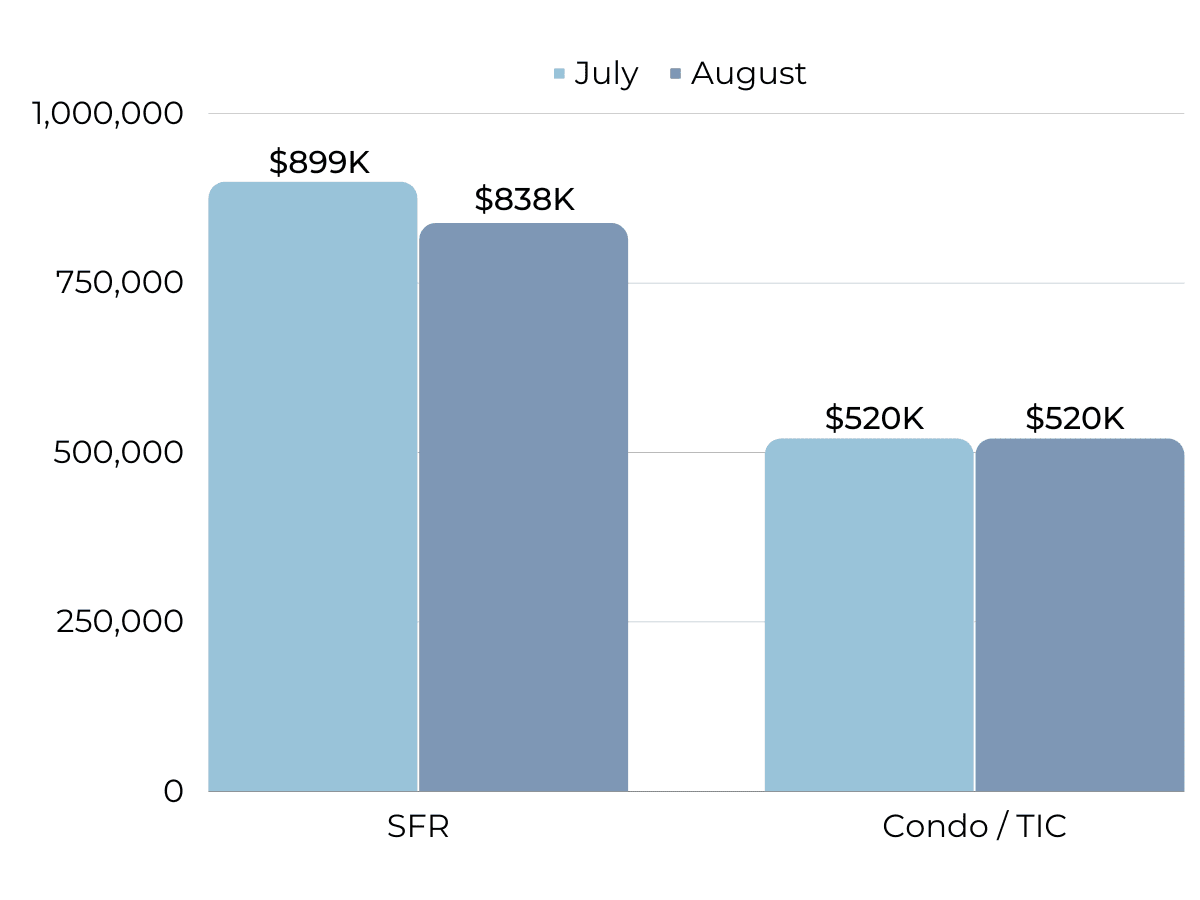 Days that homes are spending on the market has risen to 1 month and is higher for both single family homes and condos. In San Francisco, we normally see these lengths of time slow during the holidays, so it’s quite unusual for the summer months. The silver lining? The average time it takes to sell for both condos and single family homes is longer than the median. This means that homes that have been sitting awhile on the market are finally selling.