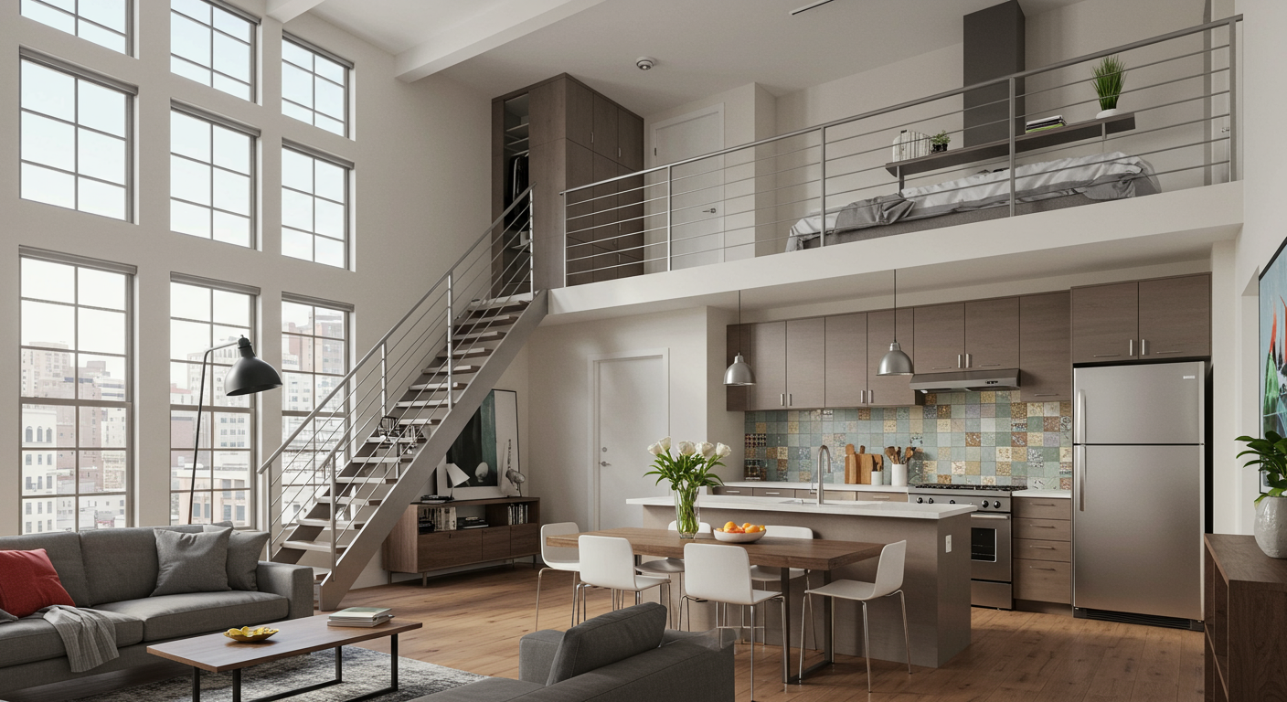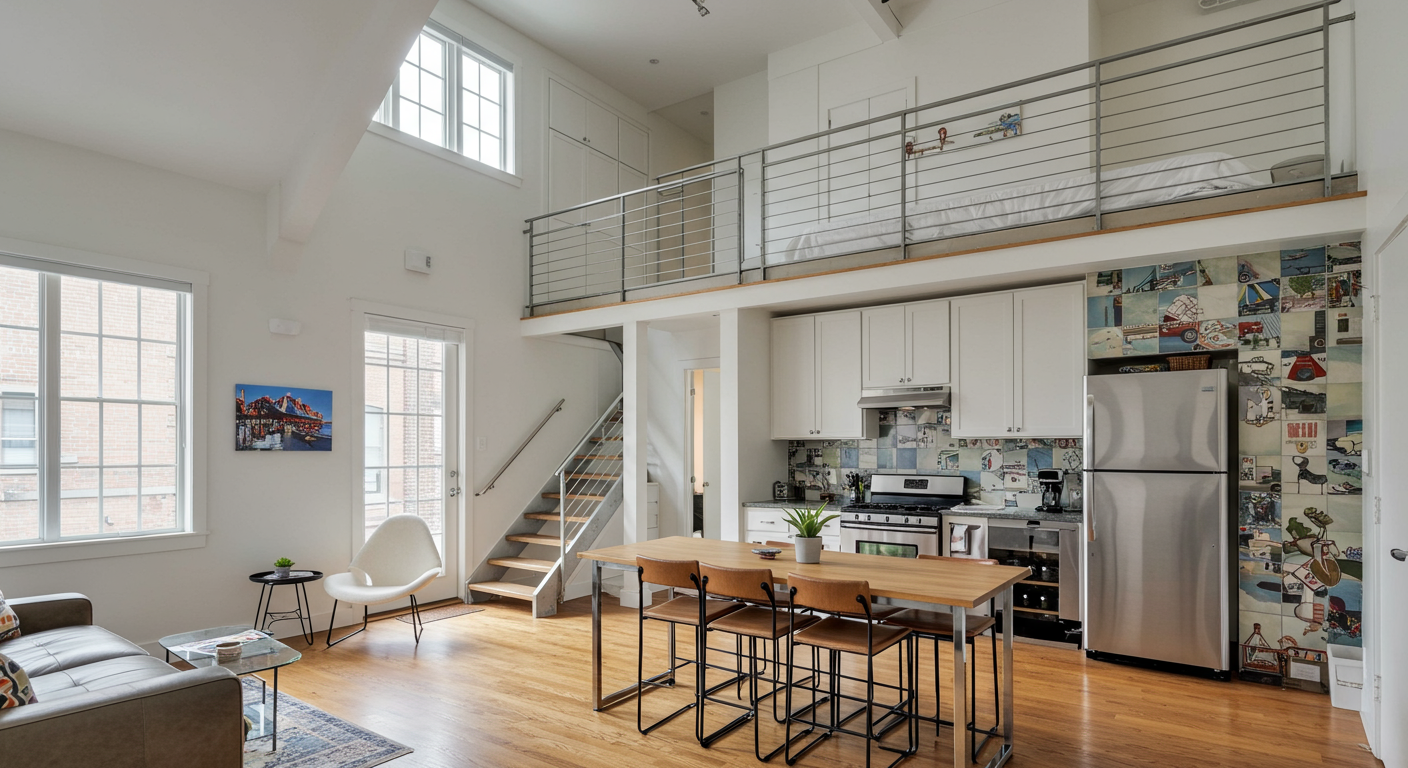 This quintessential Live-Work Loft is the perfect place for working from home! Located in start-ups’ favorite Mission District, it is a great spot not just for your living, but maybe for your business and clients too. This modern condominium features two entrances, one through the building lobby and one directly on the Bryant Street frontage. On the main level are an open-concept living, dining and kitchen area with laundry closet and a full bathroom with tub. The kitchen features stainless steel appliances and painted tile backsplash. Ascend to the loft and find a bedroom, full bathroom and built-in closets. This condominium home includes a parking space, private storage and access to a shared courtyard.