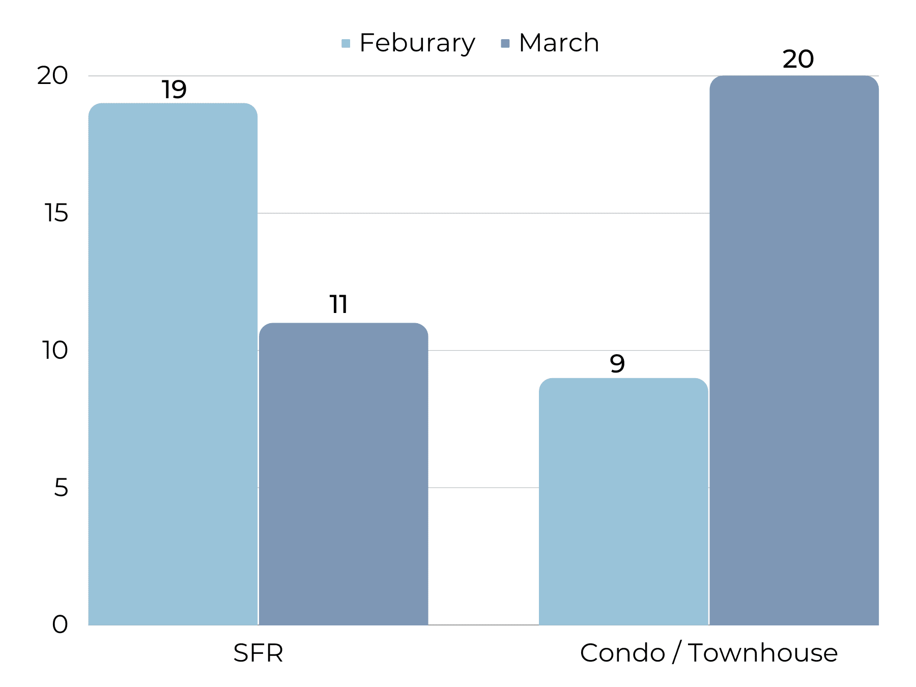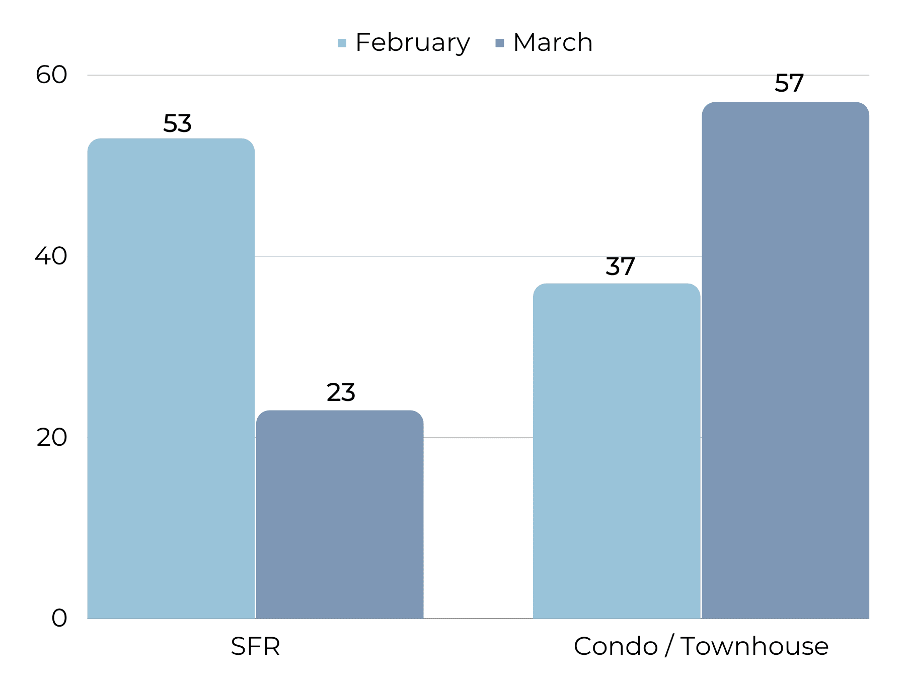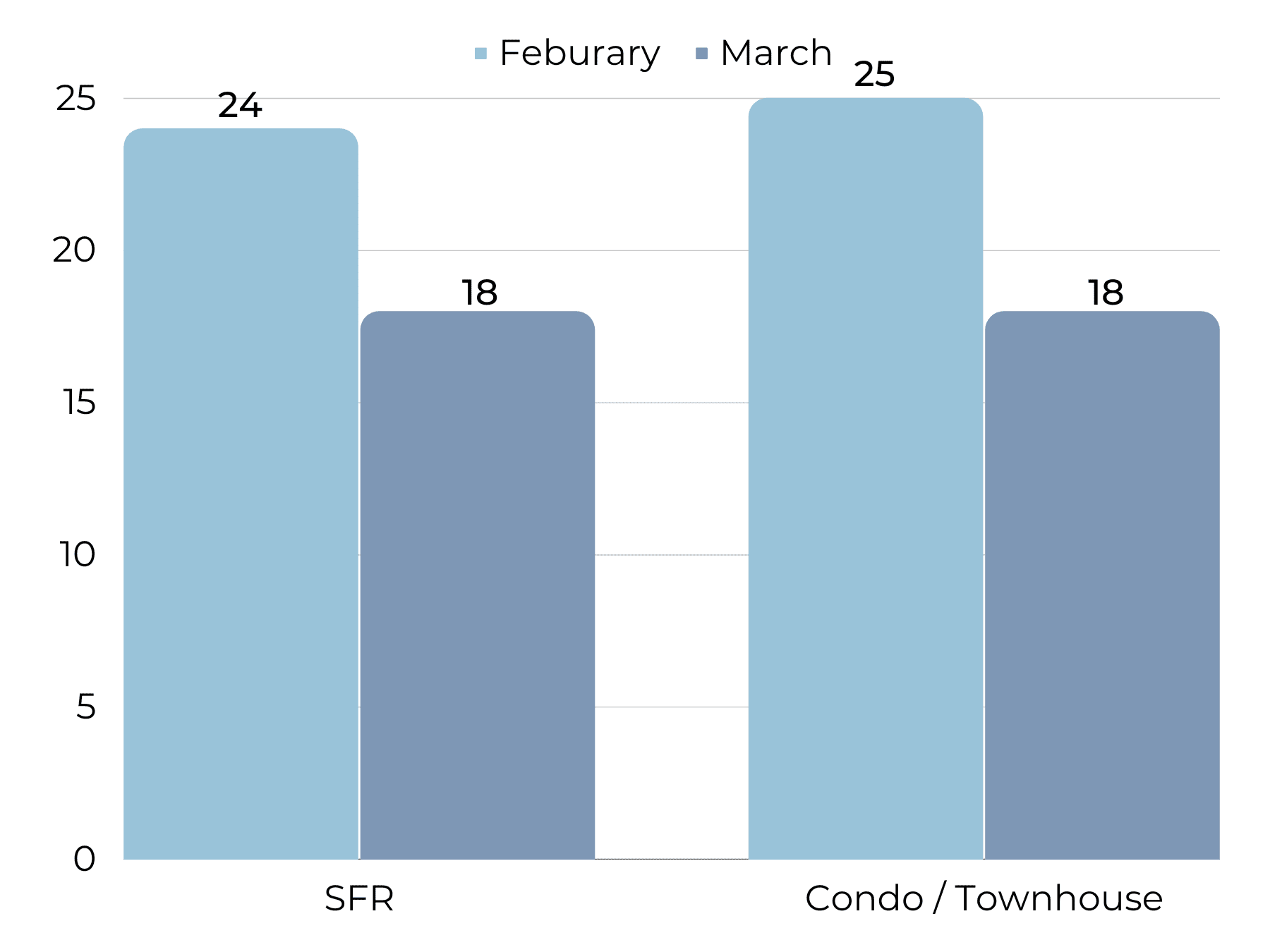 In an upswing from the slow holiday season, homes are selling faster with days on market at an average of 25 days. Though this is much longer in comparison to 2022 when the market was stronger, it is still a relatively fast length of time to sell a home.