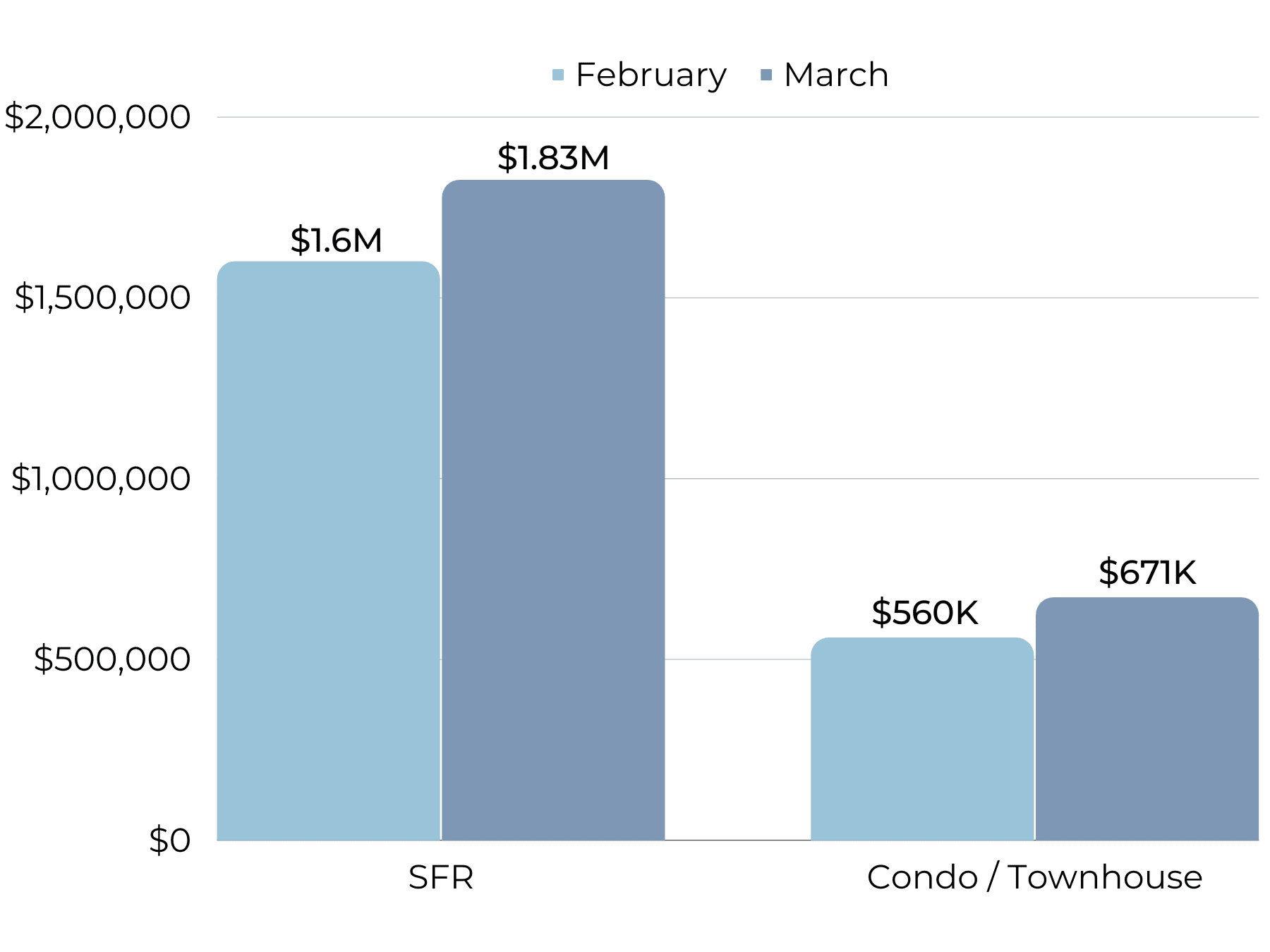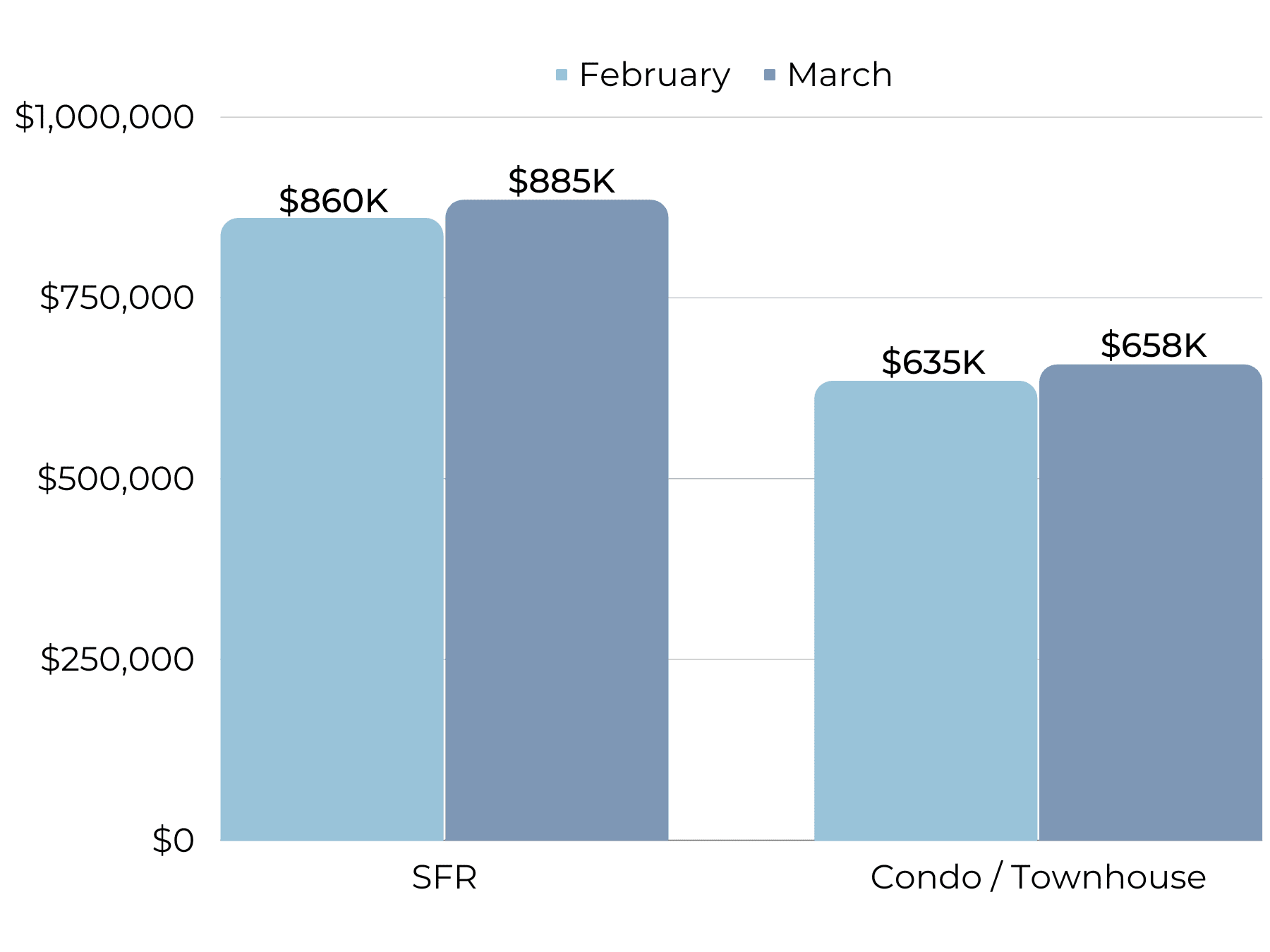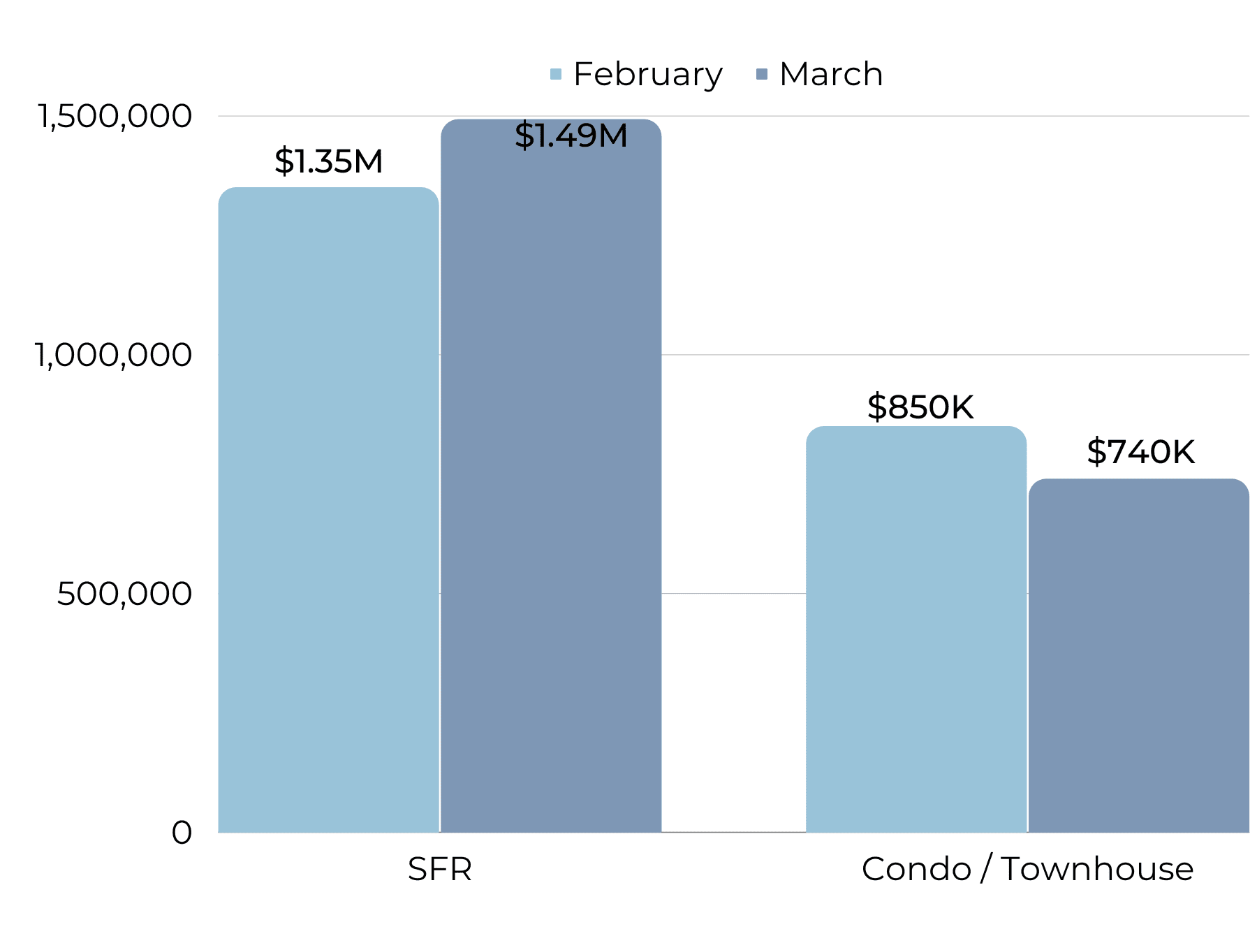 In an upswing from the slow holiday season, homes are selling faster with days on market at an average of 25 days. Though this is much longer in comparison to 2022 when the market was stronger, it is still a relatively fast length of time to sell a home.
