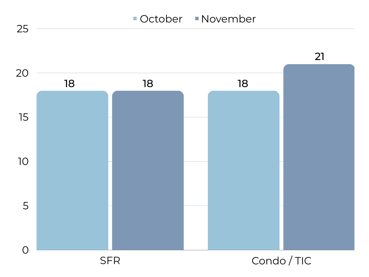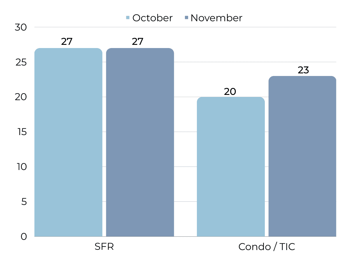 Homes in Los Angeles had an average of 33 days on market in Nov 2023, down by 5.6% compared to last year. During November 2023, 1182 homes were sold in Los Angeles; 66% of homes were sold within 30 days, 25% of homes were sold within 30 to 90 days, and 9% of homes were sold over 90 days.
