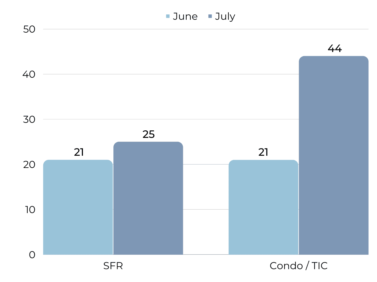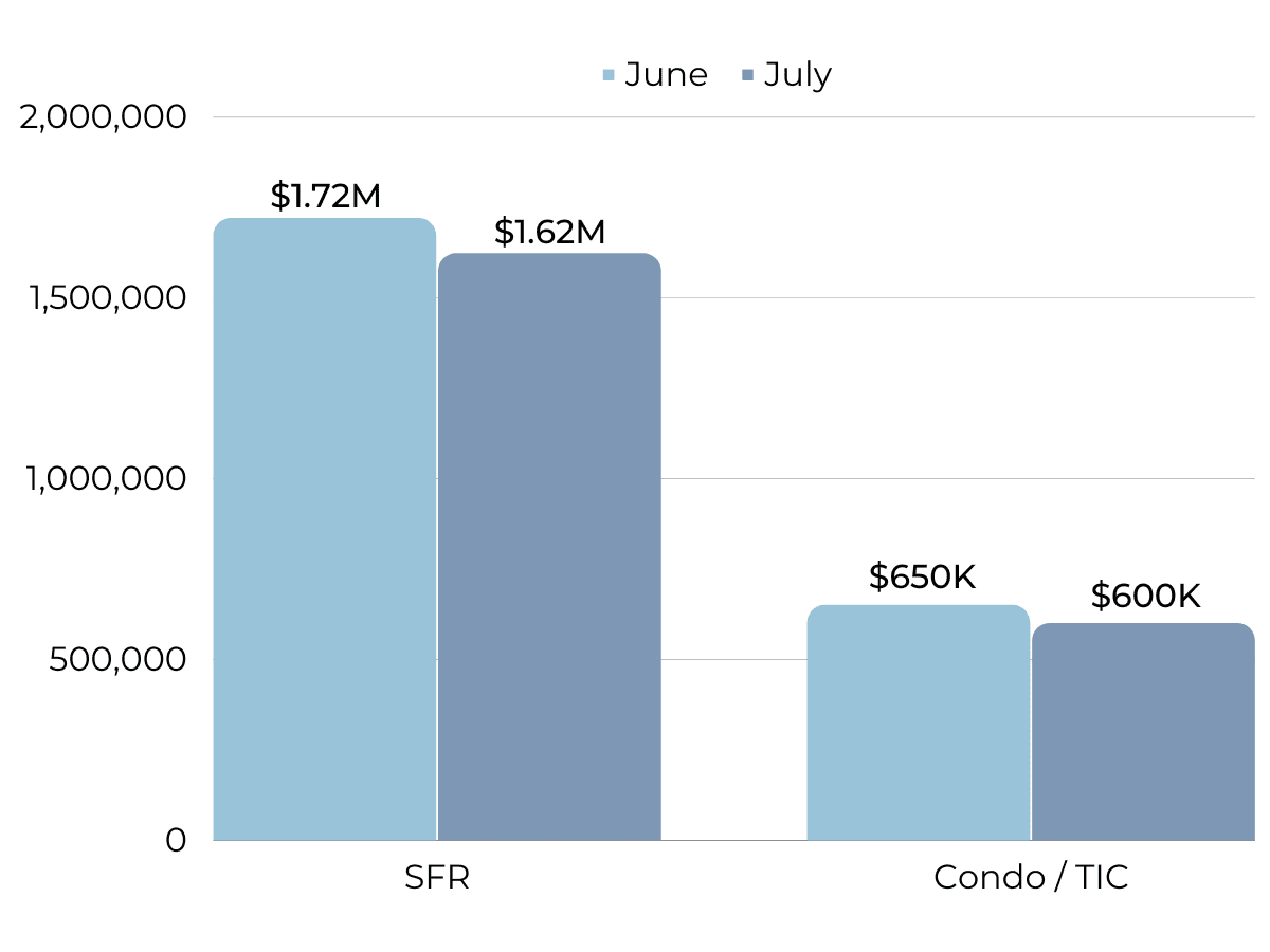 As expected during the Summer, new listings continue to trend downwards. July 2023 marks the lowest year-over-year level of new inventory in the past decade. In fact, over the past 7 months, we’ve experienced fairly historically low levels of new inventory hitting the market. As a result, pending sales and sold listings are also way down for the month of July. It’s important to remember this is on trend for the Summer season and we can expect these metrics to remain low into August and September.