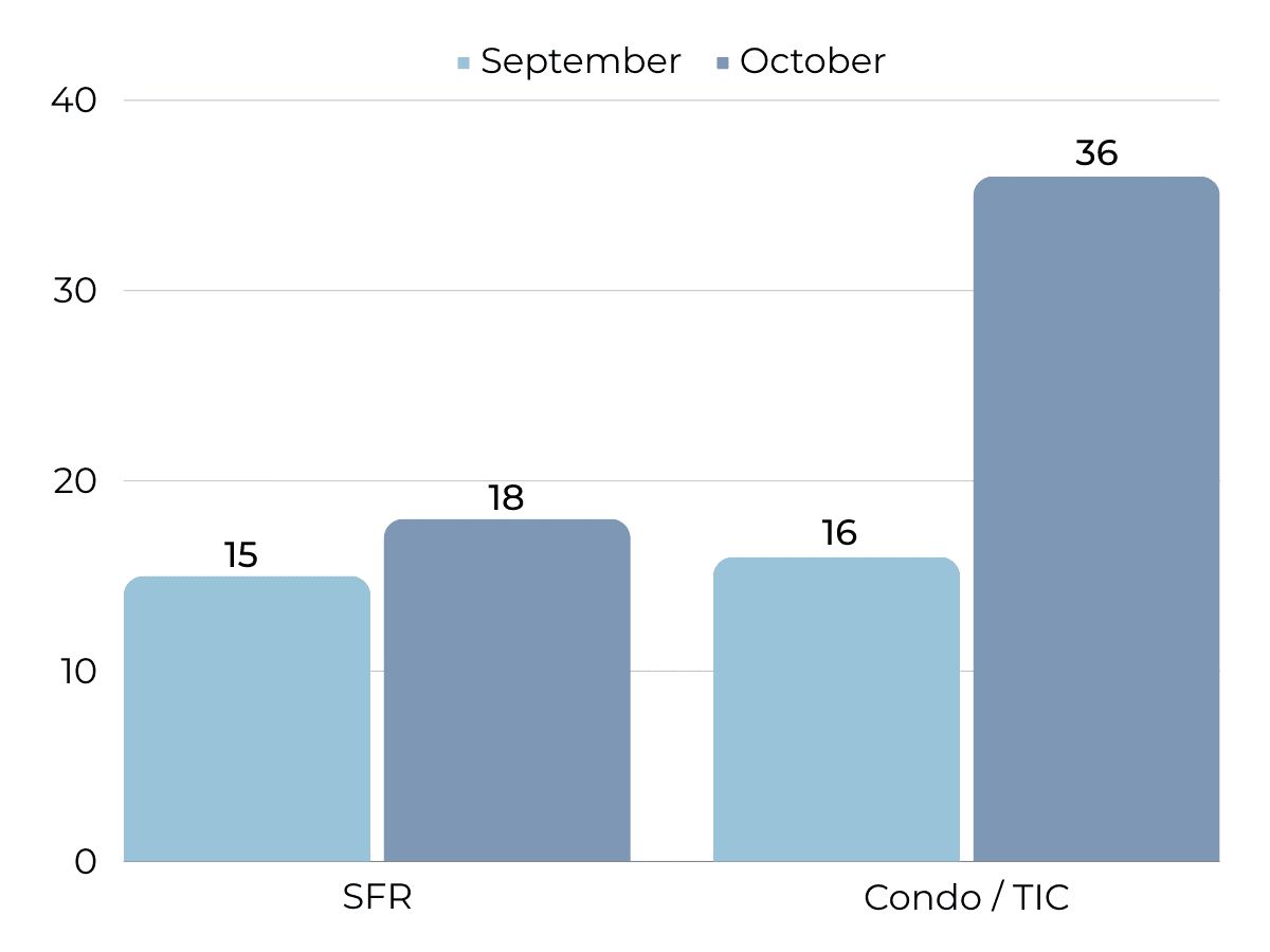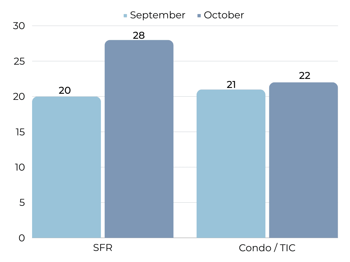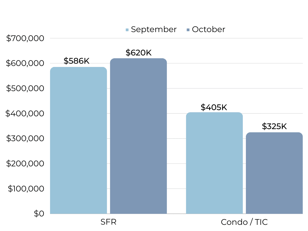 In the North Bay, home prices haven’t been largely affected by rising mortgage rates after the initial period of price correction from April 2022 to January 2023. In October, the median prices across most of the North Bay counties were only slightly below their record highs, and single-family home prices in Napa even reached a new all-time high. Napa single-family home and condo prices also had the largest year-over-year gains in October, up 19% and 52%, respectively. We expect prices in most of the North Bay to remain slightly below peak for the rest of the year. The sustained downward inventory trend and low number of new listings should create price support in the fourth quarter. New price peaks are exceptionally rare in the fall and winter, but the North Bay markets could surprise us.
