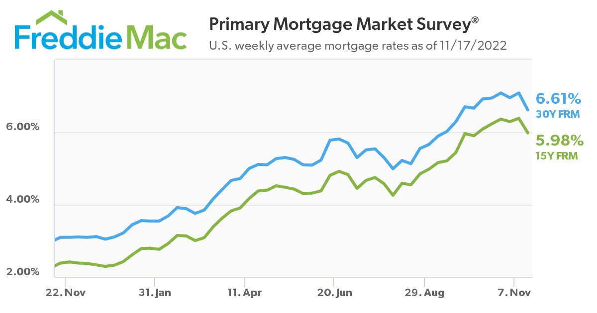 Mortgage Rates had a surprise drop this week to 6.61%, down from over 7.08% last week, representing the steepest since 1981 as reported by Freddie Mac and CNN. The drop is attributed to the slight easing of crippling inflation reported the week prior that also lead to a major jump in stock prices. This would seem to be great news for homebuyers, as lower interest rates would tend to make more homes affordable at the same monthly income.