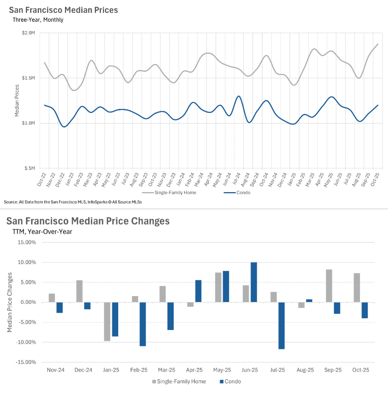 San Francisco’s single-family home market is surging, with median prices hitting a two-year high.