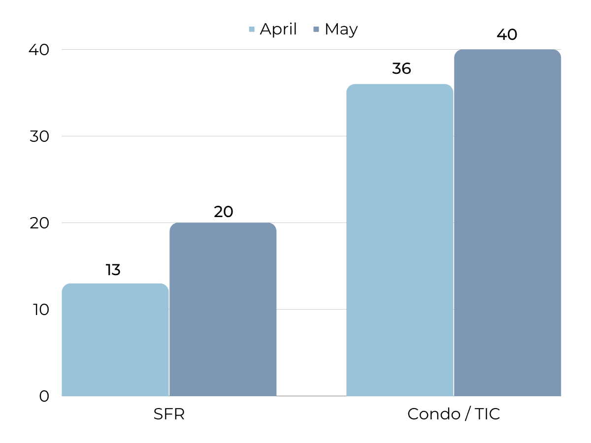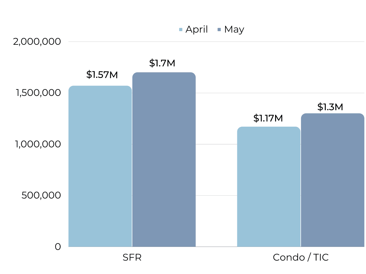 Information gathered in May (which reflects April transactions) showed an overall drop. This could be influenced by the issues surrounding Silicon Valley Bank and First Republic, as well as Tech layoffs across the Bay Area. Overall, agents feel that they’ve seen a rebound throughout the month of May. In our experience, we have noticed that buyers are more confident in the marketplace and are accepting of the higher interest rates. More and more buyers have decided that this is a good time to buy.