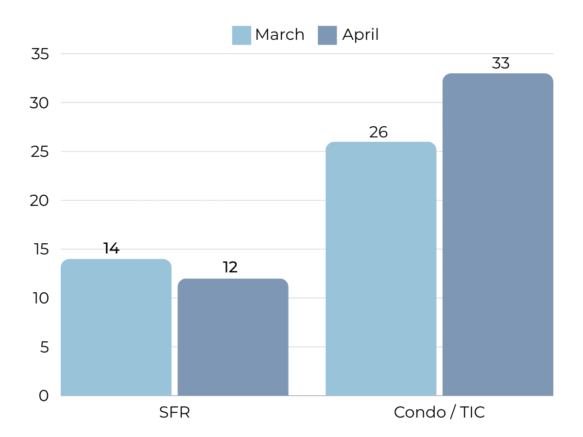 Days on market has held steady at around 2-3 weeks over the entire Spring season. Single family homes have been selling much quicker, at an average of less than two weeks while condos have taken a bit longer to sell.