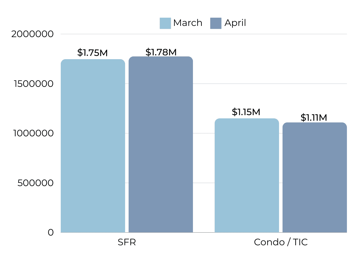 In welcome news for homeowners, average sales price is trending upwards since hitting low points in Dec ‘22 and Jan ‘23. On average, single family homes are nearing a record high from 2022, while condominium prices have declined a bit in the past two months. The amount of homes selling for over asking price is steadily increasing with single family homes selling at 12% over list price. This is also the first time, on average, condos in SF have sold over their asking price since June of 2022! Overall, the percentage of properties that are selling over list price is on the rise, with over 50% of properties being sold over their asking. Price per sqft overall in SF has been on the up and up, pointing to a recovering market.