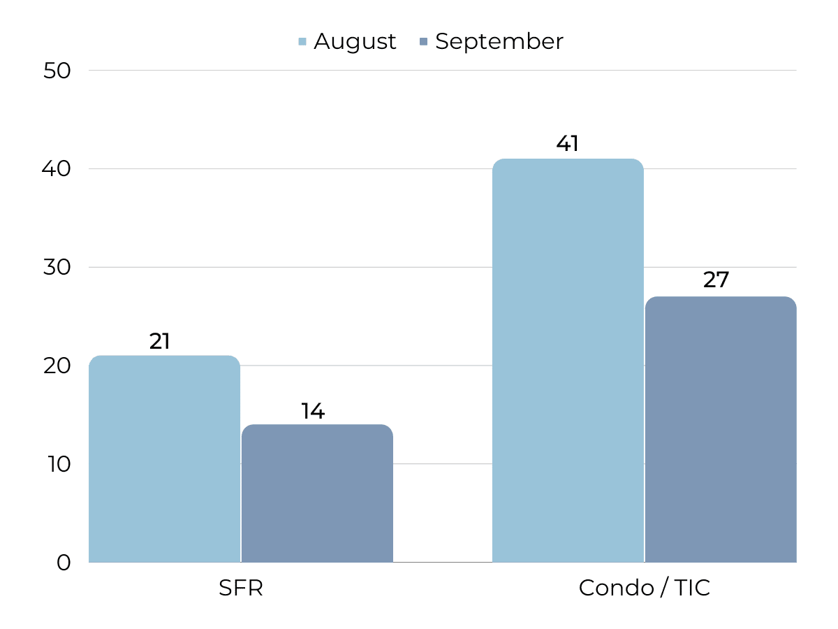 In welcome news, new listings increased significantly in September. This is comparable to years past, with September marking the beginning of the Fall Market and inventory greatly expanding. Pending sales have also trended upwards and will likely continue to rise throughout October before slowing down over the November - January holiday season. However, pending sales are still roughly 10% below historical levels. Sales over the past 3 months have remained at low levels, but we are expecting a jump in October on par with historical data trends. Due to the inventory increase, September’s active listings were up. All in all, total available inventory levels are back to historical norms for this time of year, but low pending/closed sales indicate that inventory is sitting on the market for a longer period of time. Months supply is up to 4 months, which is the highest it’s been since November 2020. In fact, this is the 4th time since 2012 that it has been this high.