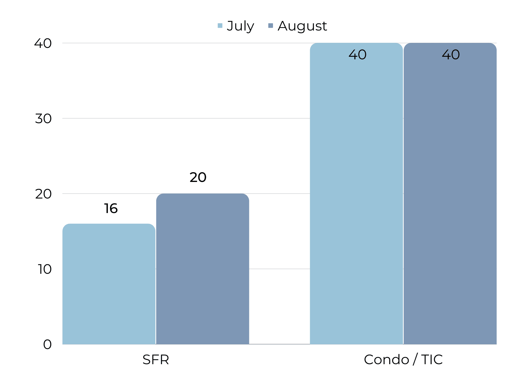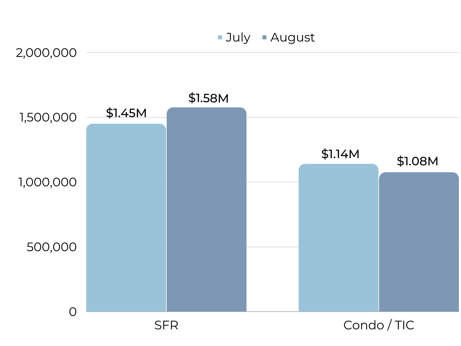 Days that homes are spending on the market has risen to 1 month and is higher for both single family homes and condos. In San Francisco, we normally see these lengths of time slow during the holidays, so it’s quite unusual for the summer months. The silver lining? The average time it takes to sell for both condos and single family homes is longer than the median. This means that homes that have been sitting awhile on the market are finally selling.
