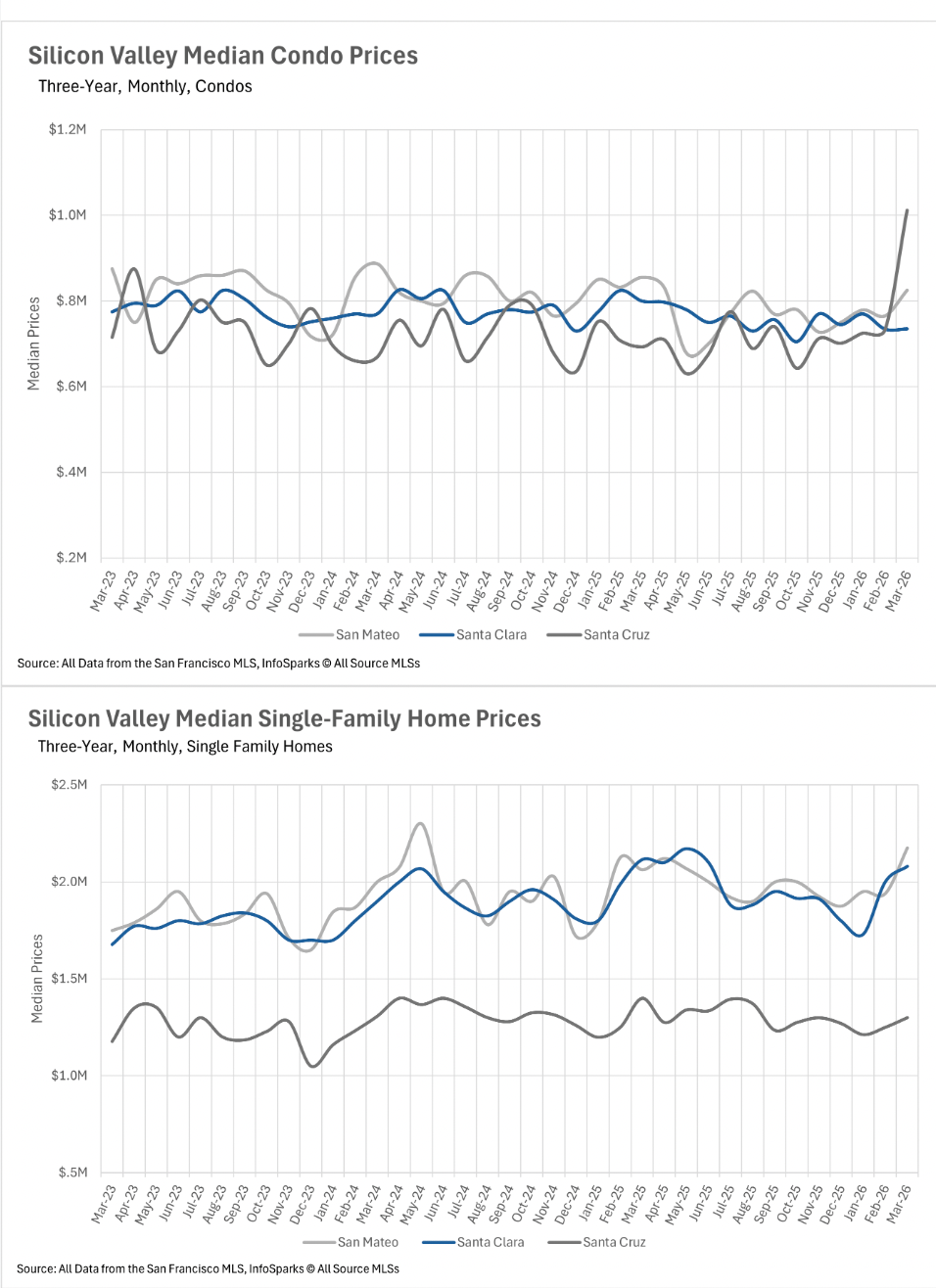 Overall, Silicon Valley remains a tale of two markets. Single-family homes continue to operate in a strong seller’s market, with low inventory and quick sales driving competition. Condos, on the other hand, offer more balance—and in some cases, a buyer’s market—giving purchasers greater flexibility and negotiating power as the spring season unfolds.