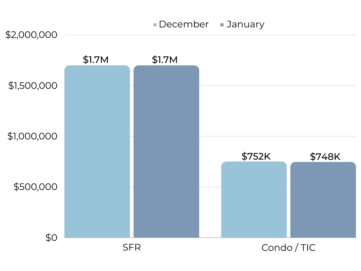 Months of Supply Inventory (MSI) quantifies the supply/demand relationship by measuring how many months it would take for all current homes listed on the market to sell at the current rate of sales. The long-term average MSI is around three months in California, which indicates a balanced market. An MSI lower than three indicates that there are more buyers than sellers on the market (meaning it’s a sellers’ market), while a higher MSI indicates there are more sellers than buyers (meaning it’s a buyers’ market). The Silicon Valley market tends to favor sellers, which is reflected in its low MSI. MSI fell sharply in the first quarter of 2023 before gently trending higher from May to November. In December, MSI declined sharply. Currently, the Silicon Valley housing market strongly favors sellers.