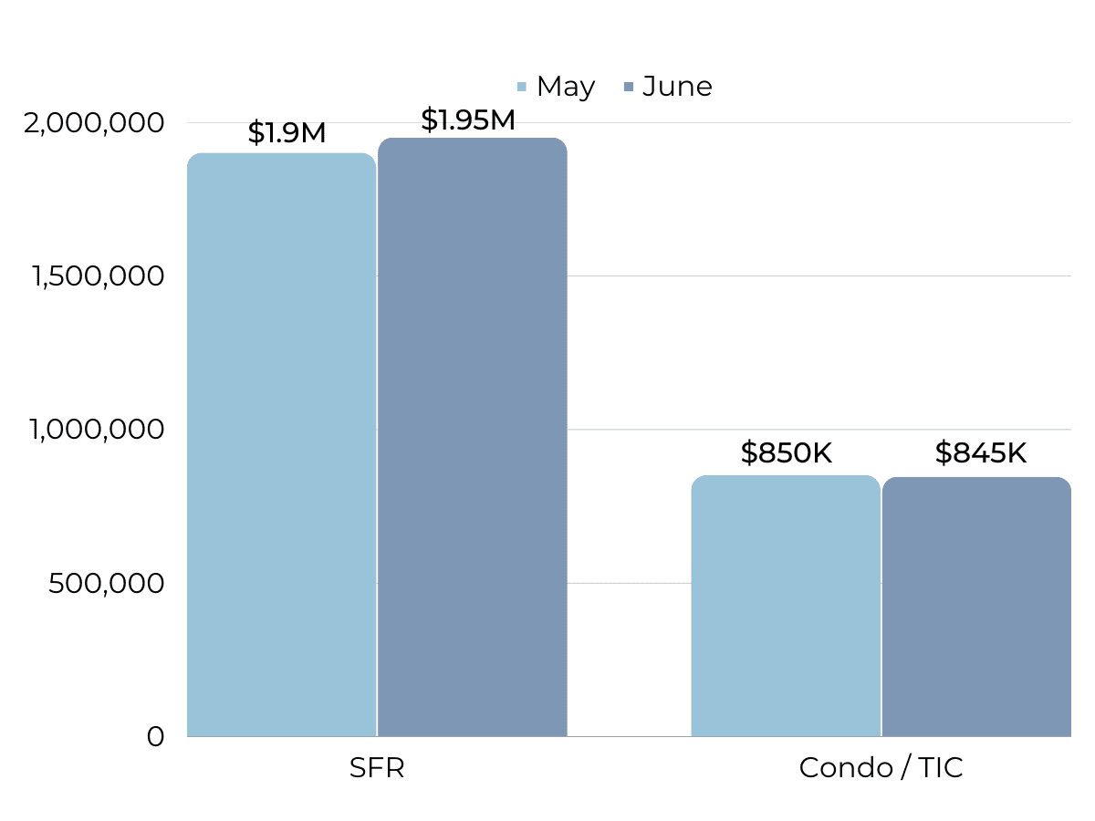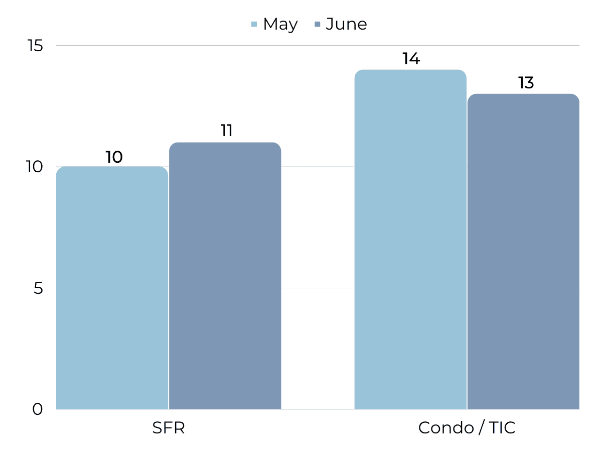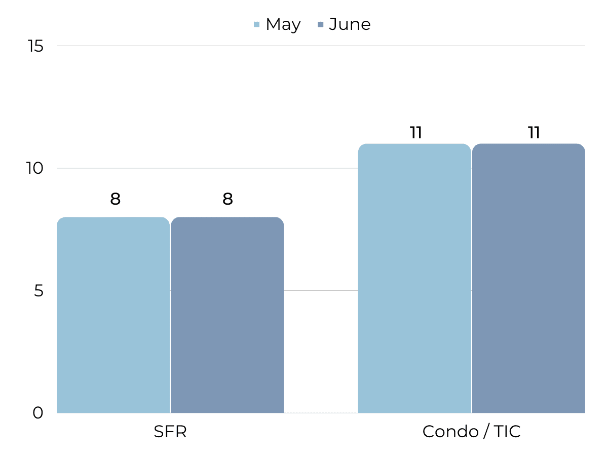 In welcome news for sellers, average sales price saw a jump in June, though single-family homes are starting to dip back down. Condo prices are yo-yoing but stayed relatively stable in the Spring and are showing signs of improvement. Homes are increasingly selling over their original price (8% over for single family homes and 1% under for condos). We can expect both of these stats to rise further. On an even more positive note, 70% of single family homes and 40% of condos are selling over list price! Average price per sq ft has remained stable overall, a sign of a healthy and fair market.
