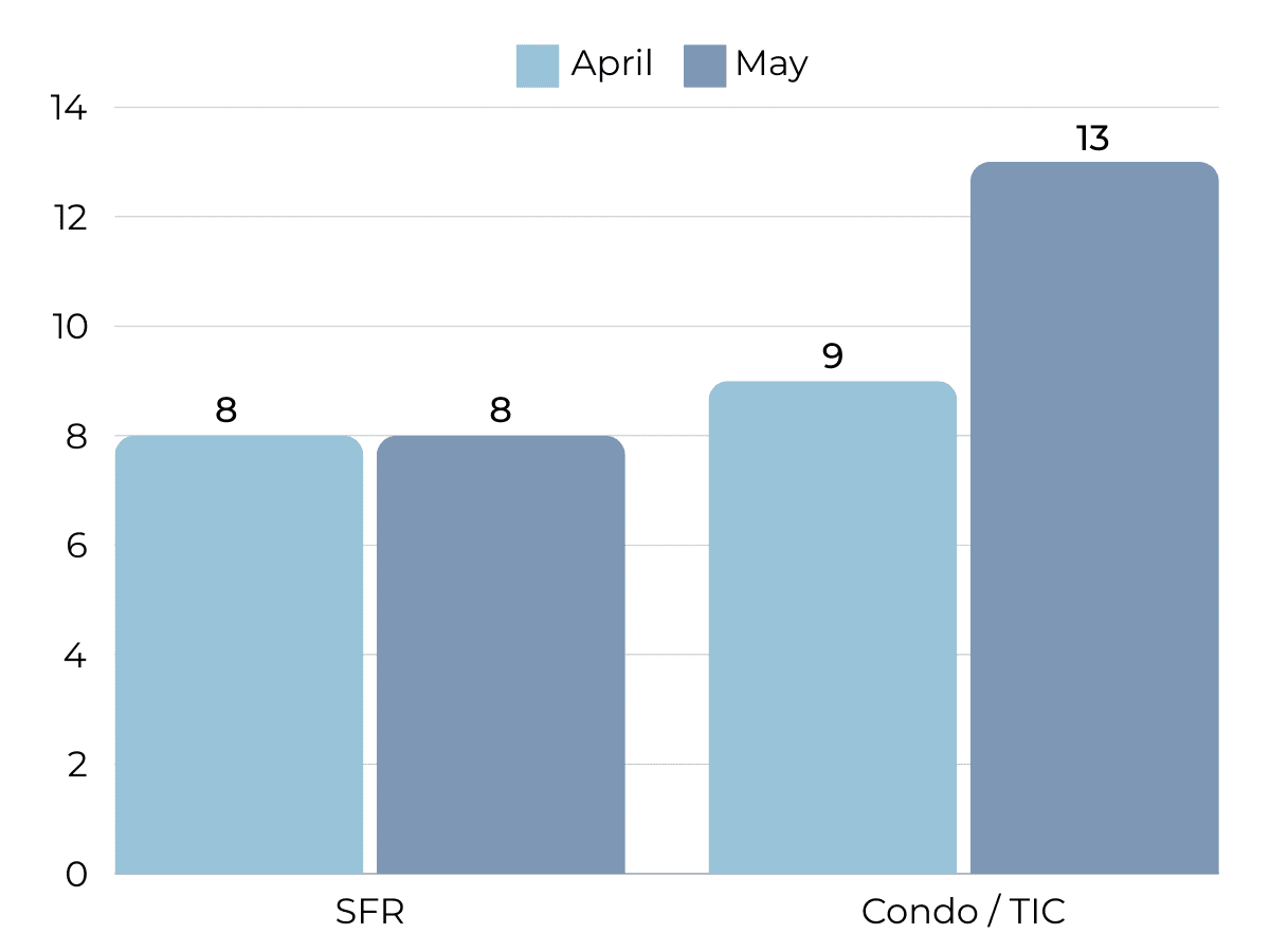 Since the start of 2023, single-family home inventory has followed fairly typical seasonal trends, but at significantly depressed levels. Low inventory and fewer new listings have slowed the market considerably. Typically, inventory peaks in July or August and declines through December or January, but the lack of new listings prevented meaningful inventory growth. Last year, new listings and sales peaked in May, while inventory peaked in September. New listings have been exceptionally low, so the little inventory growth in 2023 was driven by softening demand. In December 2023, inventory and sales dropped, but more new listings have come to the market in 2024, which has driven the significant increase in sales so far this year. The market is already looking healthier, and we expect more new listings and sales in the summer months.