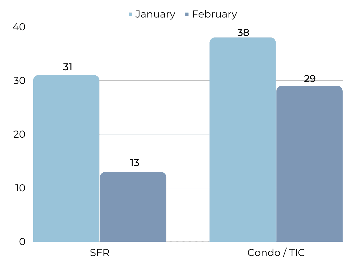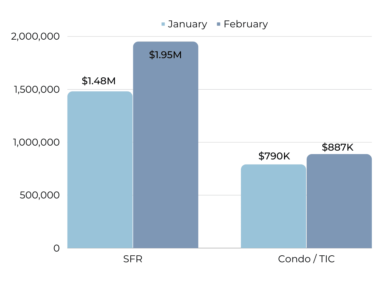Sales prices are on the up and up, experiencing a slight bump in February. They are on par with 2017 prices, though we should brace for shifts entering the Spring season. Condominiums saw the most dramatic increase in prices last month while single family homes saw a more modest increase. Homes sold within a half percent of their listing price on average. This is welcome news for sellers since the last four months have seen homes sell below listing price on average. Feedback from clients leads me to believe homeowners are realigning their price expectations and pricing their properties lower initially. Less than 40% of properties are selling over list price, but that number is ticking upward. Price per square foot also saw an optimistic jump in February, rebounding from the holidays and hovering at 2017/2018 levels.
