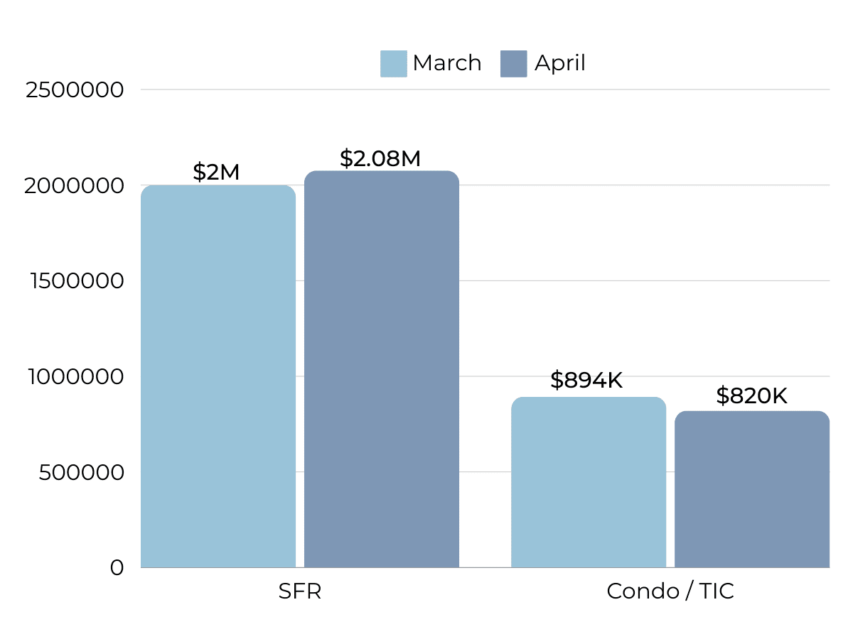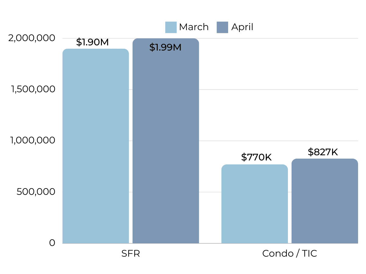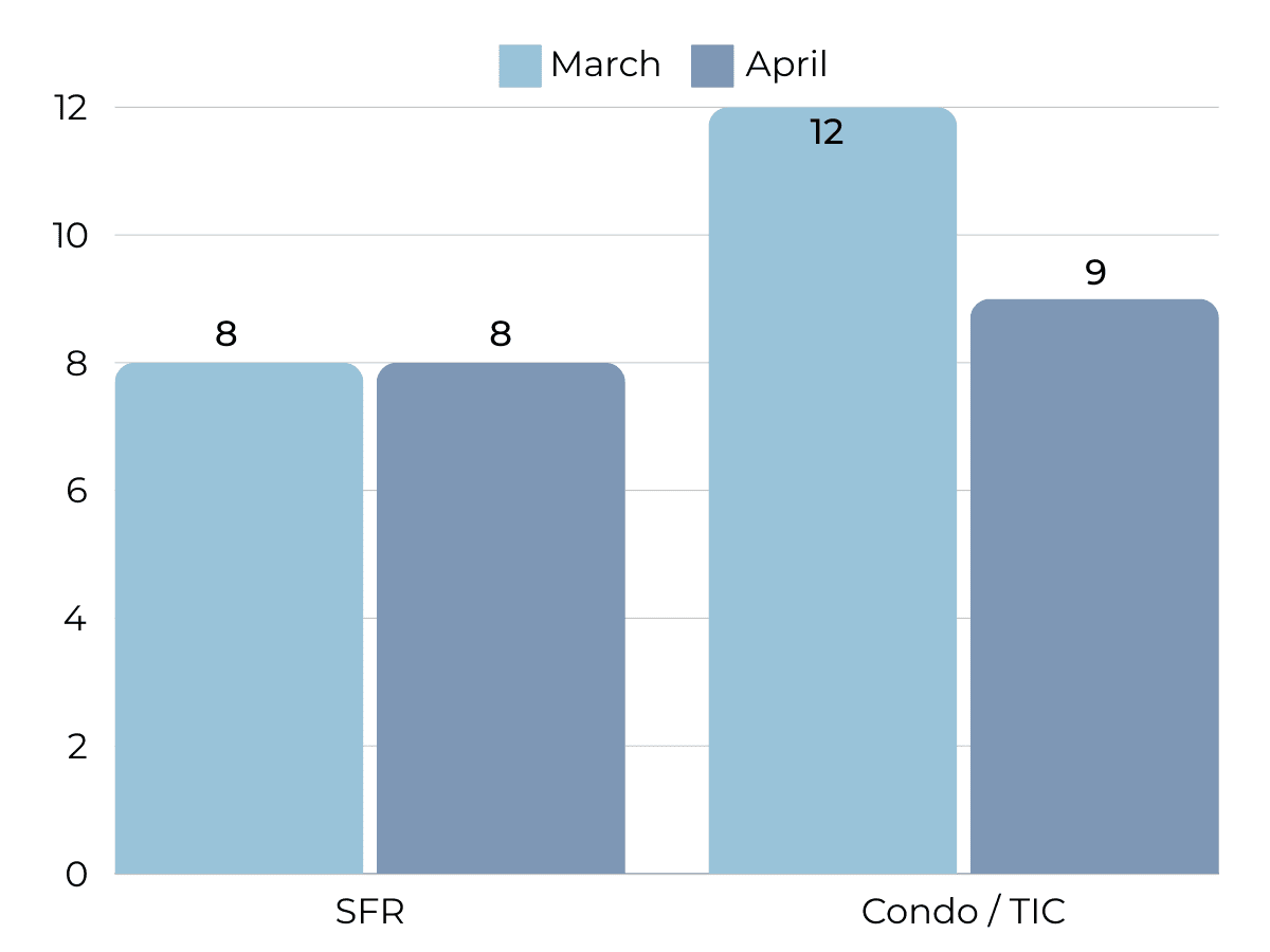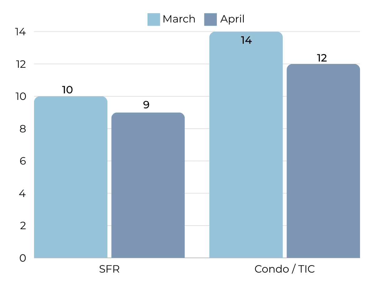 Months of Supply Inventory (MSI) quantifies the supply/demand relationship by measuring how many months it would take for all current homes listed on the market to sell at the current rate of sales. The long-term average MSI is around three months in California, which indicates a balanced market. An MSI lower than three indicates that there are more buyers than sellers on the market (meaning it’s a sellers’ market), while a higher MSI indicates there are more sellers than buyers (meaning it’s a buyers’ market). The Silicon Valley market tends to favor sellers, which is reflected in its low MSI. MSI trended higher in the second half of 2023, but never climbed above three months of supply. In February and March 2024, single-family home MSI fell significantly, indicating the housing market strongly favors sellers. For condos, MSI rose in March but is still quite low, also implying a sellers’ market.