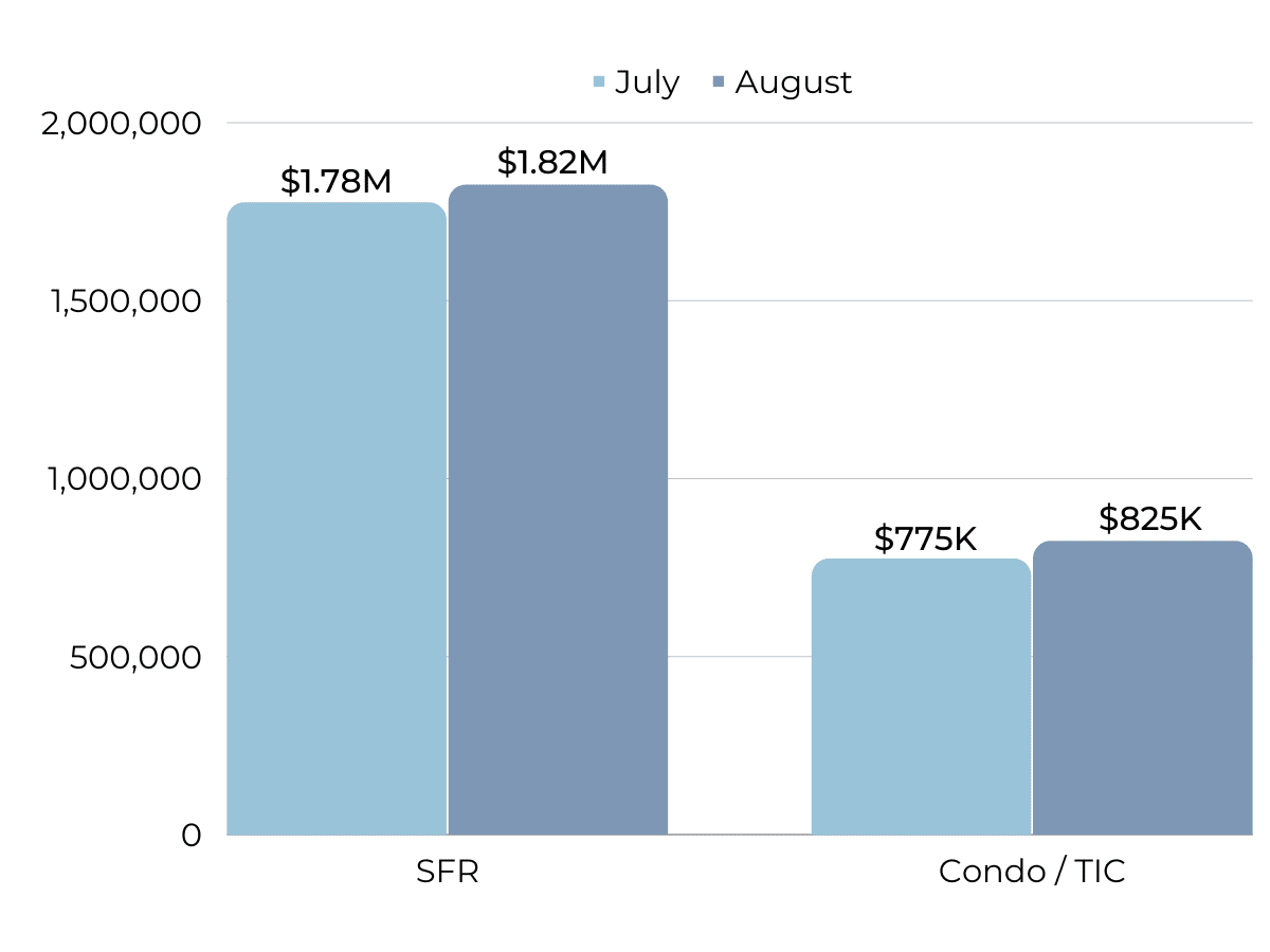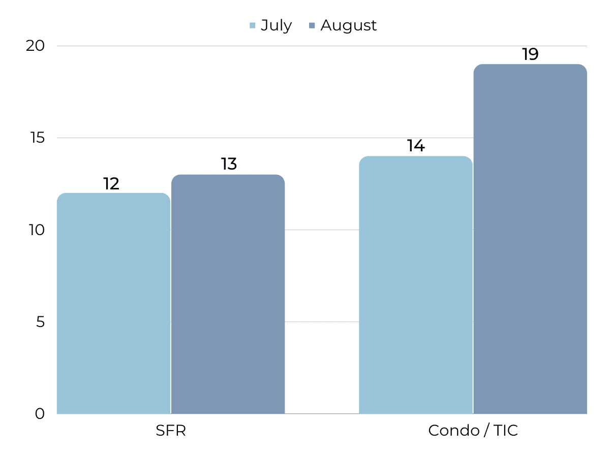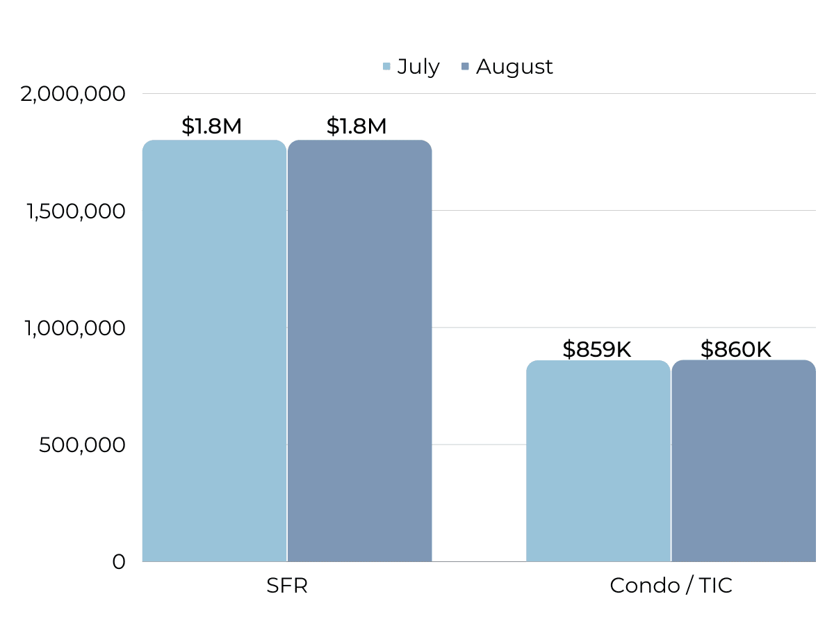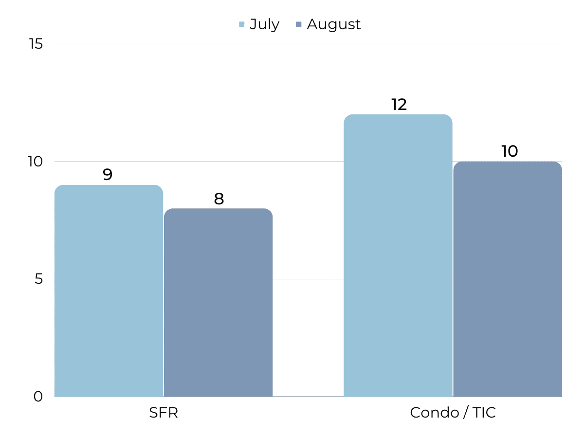 Days that homes are spending on the market has risen to 1 month and is higher for both single family homes and condos. In San Francisco, we normally see these lengths of time slow during the holidays, so it’s quite unusual for the summer months. The silver lining? The average time it takes to sell for both condos and single family homes is longer than the median. This means that homes that have been sitting awhile on the market are finally selling.